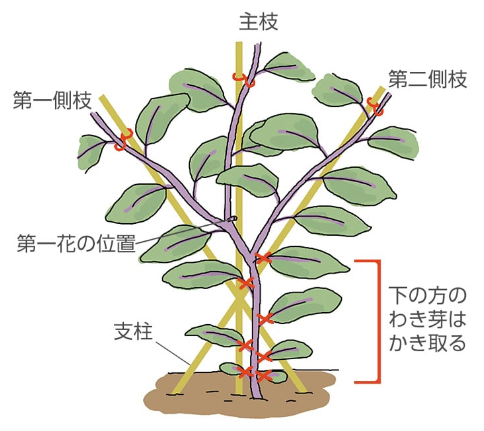 イラスト出典:サカタのタネ「園芸通信」ナスの育て方・栽培方法