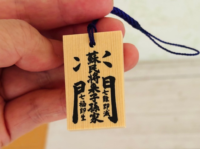 私は伊勢のおかげ横丁でこの小さな木札を求めました。