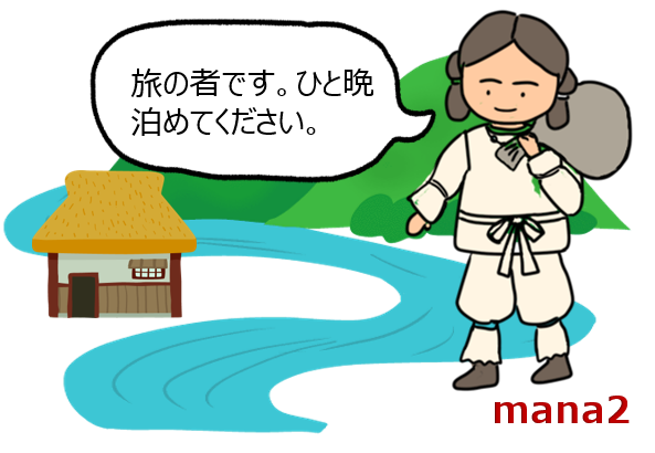 旅の途中で疲れ果てたスサノオノミコトが一夜の宿を求めます。
